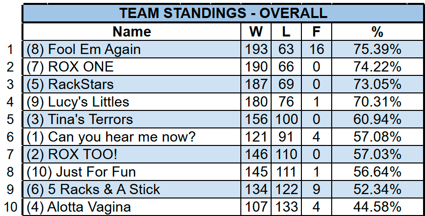 Week 16 stats are completed, we have 6 weeks left in team play and two mandatory fundraisers remaining.